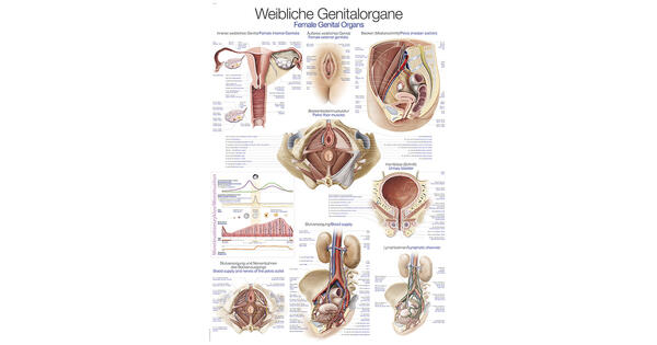 Denne fargerike anatomisk plakaten illustrerer det kvinnelige kjønnsorganet.