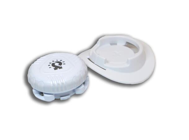 Dial, push/pull type. Skru for å låse, dra ut for å løsne. Kapasitet i hjulet er 25cm.