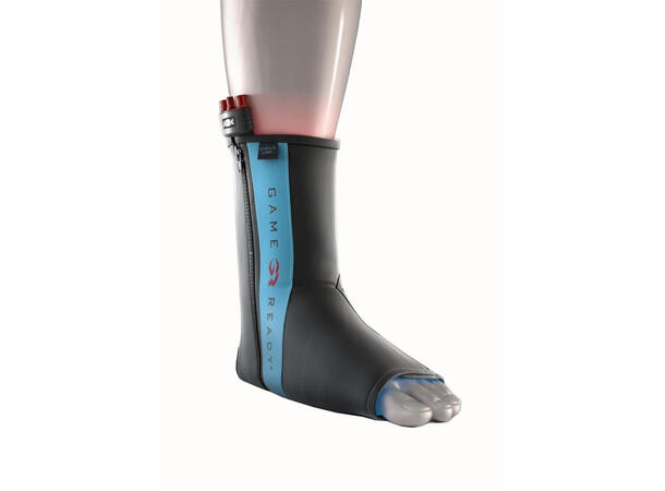 The Game Ready ® Ankelbandasje sitter godt rundt den venstre eller høyre ankel, er praktisk, og gir samtidig periodisk kompresjon og kuldebehandling for å behandle akutte skader.