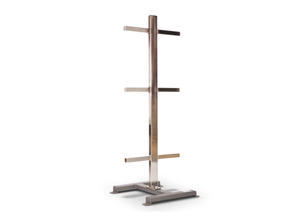 Ett snyggt och smidigt ställ med sex platser. Viktupphängen har dessutom smalare diameter för att enklare hänga upp eller ta av viktskivor.