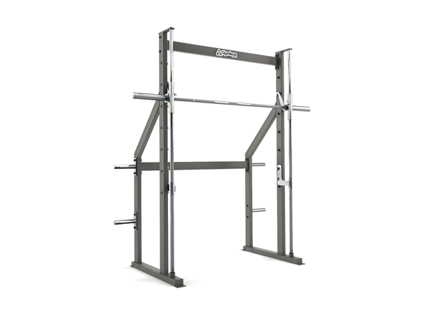 Smithmaskin utrustad med en stabil stomme och en specialtillverkad stång som ger hög stabilitet utan glapp. Smidig lastning från viktställen. Den nedre balken (ej med på bild) kan tas bort för fri placering av bänken.