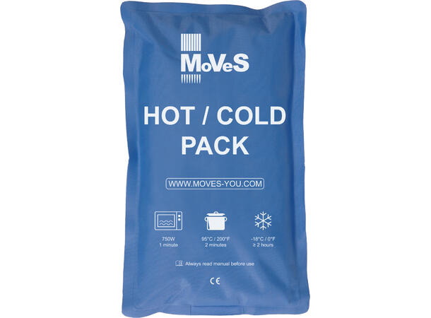 MoVeS Hot/Cold Pack brukes både til varme- og kuldebehandling og er et godt alternativ til varmeputer og normale isposer. Pakningene holder høy kvalitet og kan bøyes i alle vinkler. De kan varmes i vannbad eller mikroovn, og kjøles ned i fryseren. Beregnet både til hjemmebruk og profesjonell bruk på klinikk. Trekk i nylon.