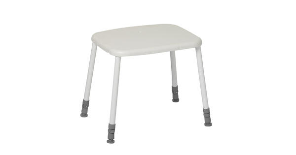 Stabil stålrörskonstruktion. Ergonomisk plastsits, 45 x 40 cm, med dräneringshål. Ställbar sitshöjd 43 till 58 cm. Inställning utan verktyg. Försedd med antiglid-doppskor. Max brukarvikt 150 kg. När brukarvikten överstiger 90 kg bör låsmuttrarna, som finns i förpackningen, användas. Vikt 4,6 kg.