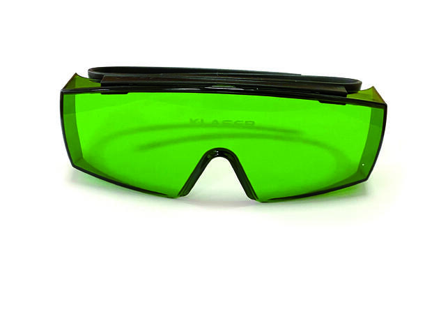 Beskyttelsesbriller fra K-Laser som beskytter behandler mot alle bølgelengder maskinene tilbyr.